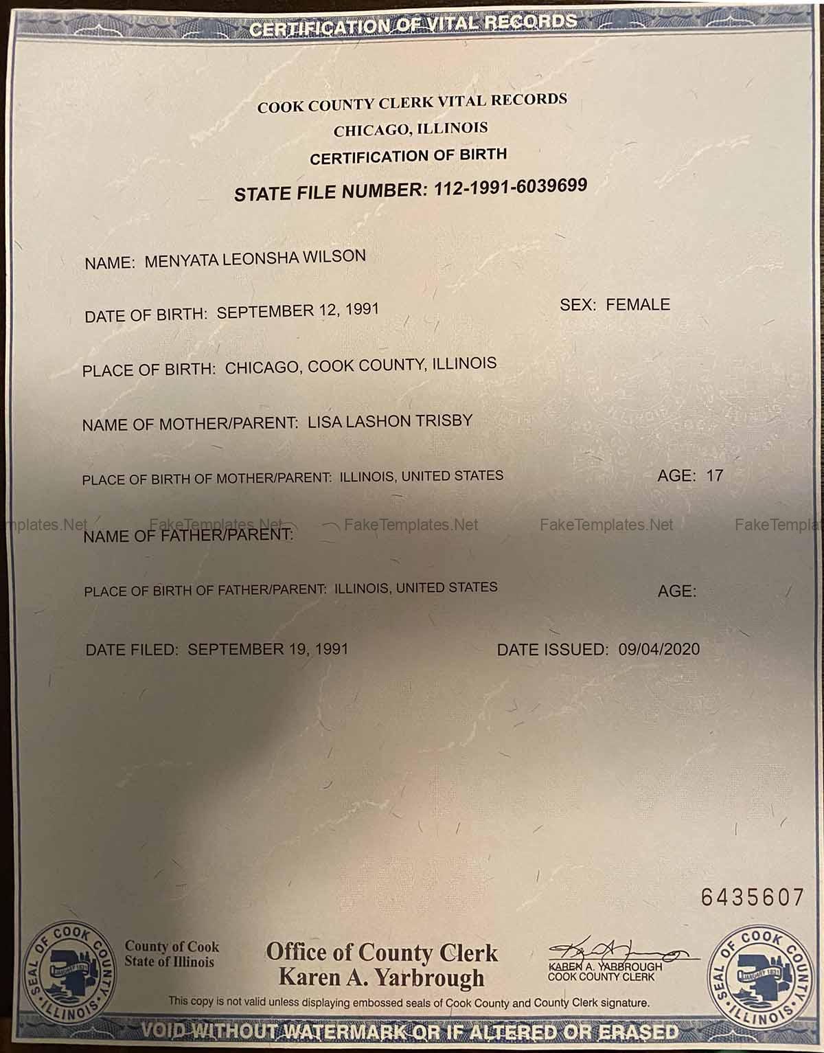Illinois Birth Certificate Template
