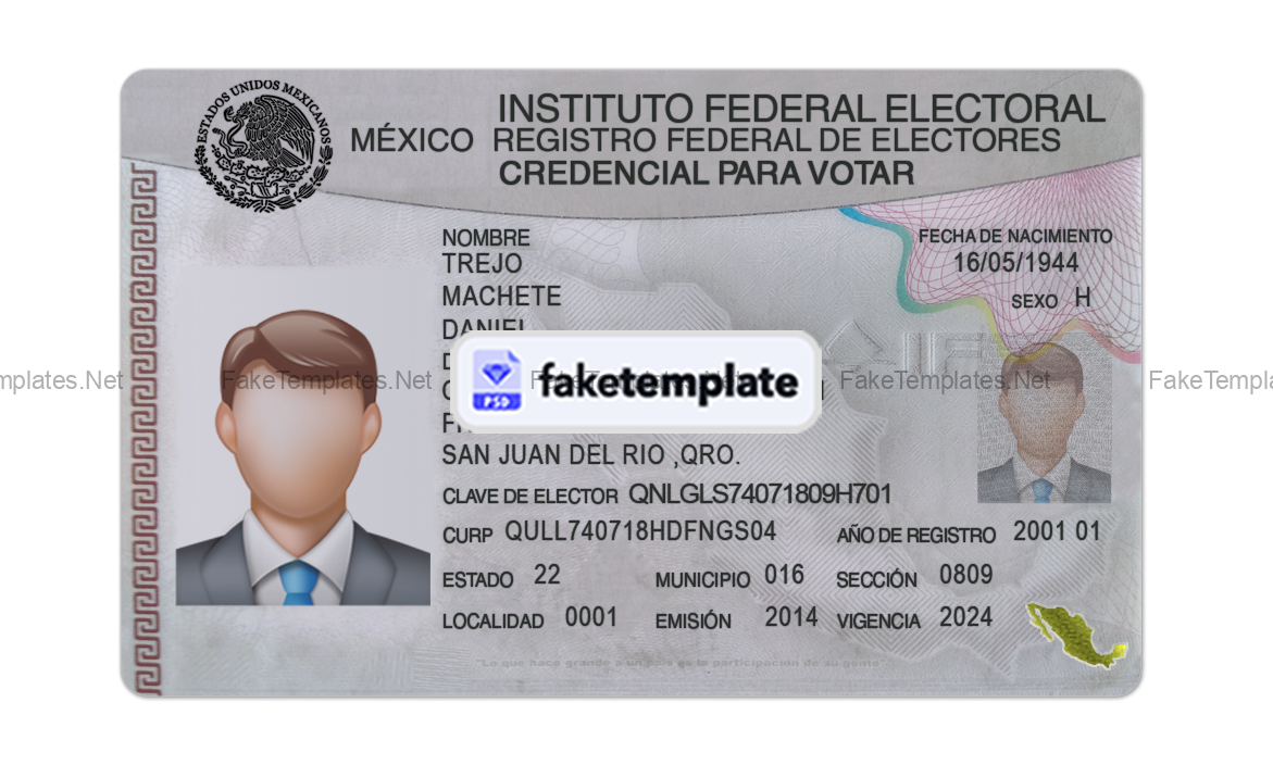 Mexico ID Template (photoshop) is best for verify Instant file download after buying.