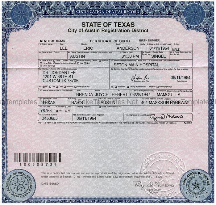 Texas Birth Certificate Template (photoshop) is best for verify Instant file download after buying.