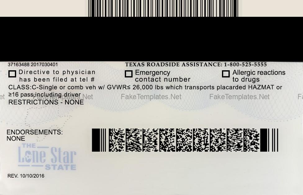 Texas Driver License Template