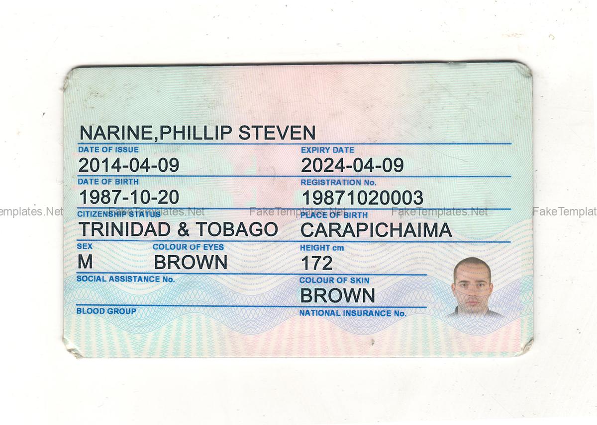 Trinidad and Tobago National ID Template (photoshop) is best for verify Instant file download after buying.